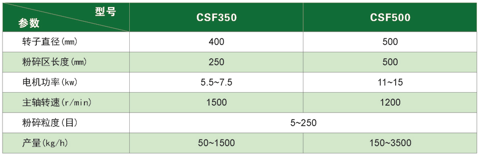 該機主要由加料斗、上箱體、下箱體、轉子、錘片、篩網、機架、出料口等部件組成。粉碎機工作時,電動機帶動主軸即轉子(轉子四周均布有若干片錘片)高速旋轉。錘片與定子組成的粉碎區結構緊湊,使進入機器的物料在旋轉氣流中緊密地摩擦和強烈地沖擊到錘片上,并在錘片與定子之間的縫隙中再次研磨。在這過程中,轉子吸進大量的空氣,起到冷卻機器、磨料、傳送細粉的目的。物料粉碎細度取決于物料的性質和篩網的尺寸,以及物料空氣的通過量。