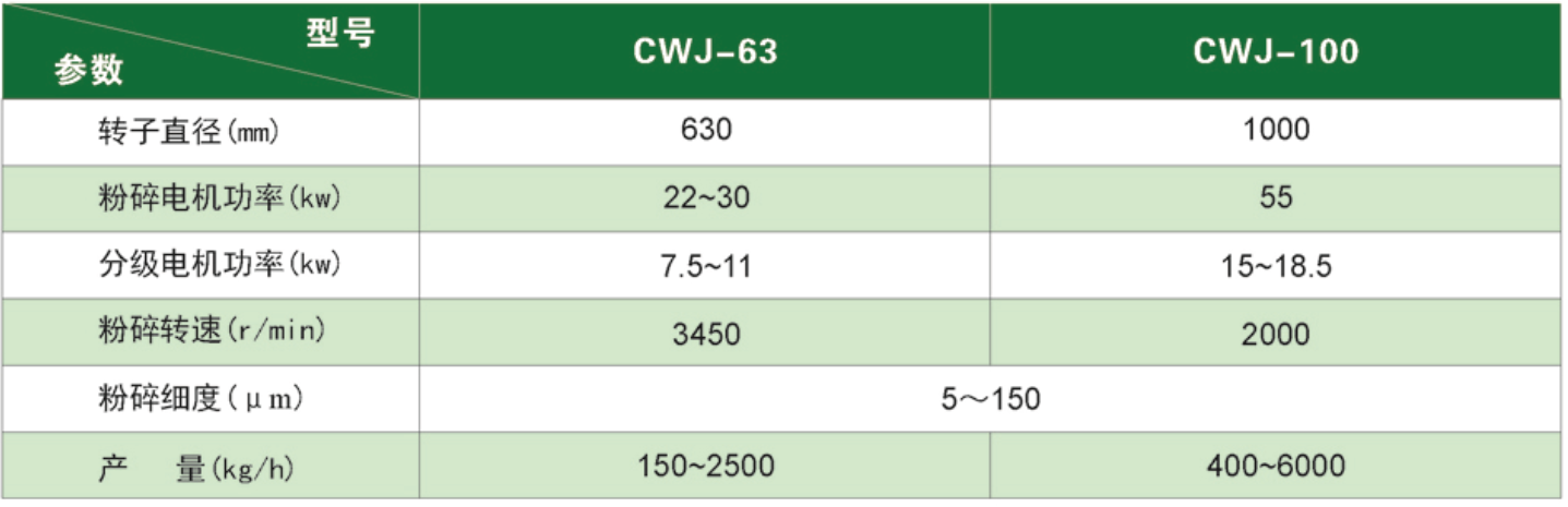 ① 本機(jī)為立軸式超微粉碎機(jī),上部為臥式渦流高精度分級機(jī),能同時(shí)完成物料的超細(xì)粉碎和微粉分級兩道工序;