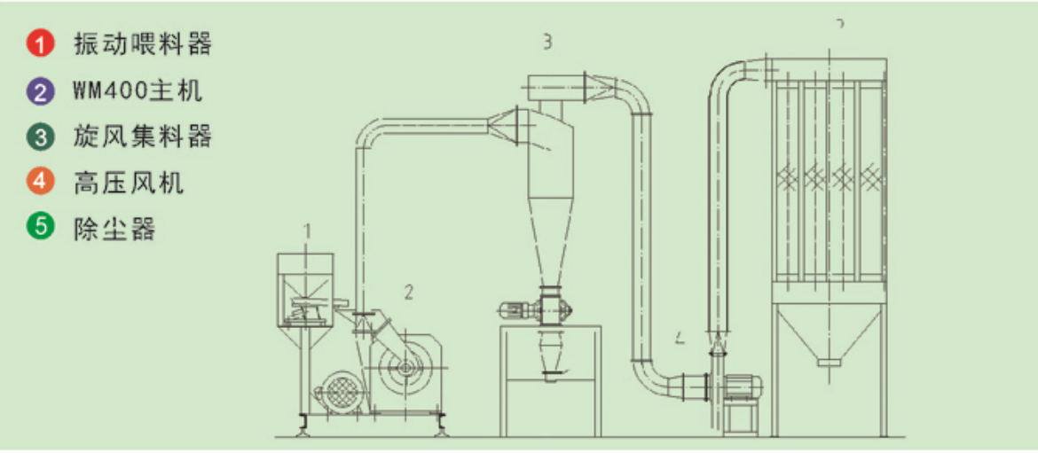 ② 可組成冷風粉碎系統:熔點較低的合成樹脂、塑膠或粉碎時容易發熱的物料,可配合冷風冷卻粉碎。