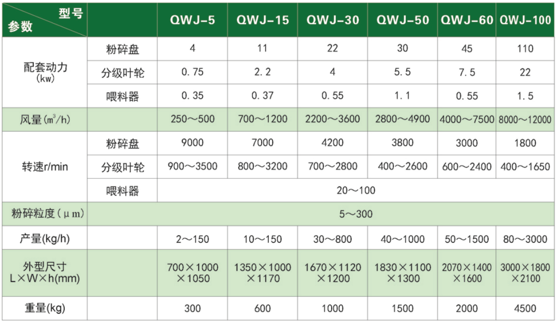 ① 本機是一種立軸反射型微粉碎機,在粉碎室內(nèi)設有分級裝置,粉碎后的物料受氣流作用,經(jīng)分級裝置而收集,分級裝置取代通常粉碎機篩網(wǎng),能同時完成微粉粉碎和微粉分選的兩道加工工序,粉碎效率高。
